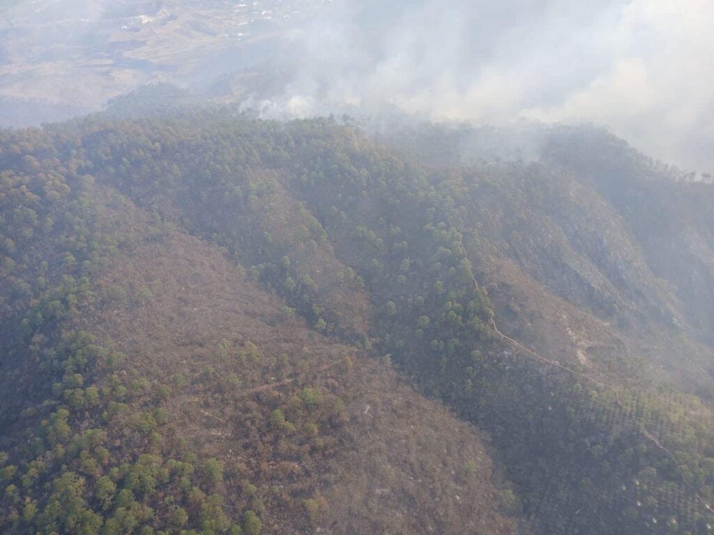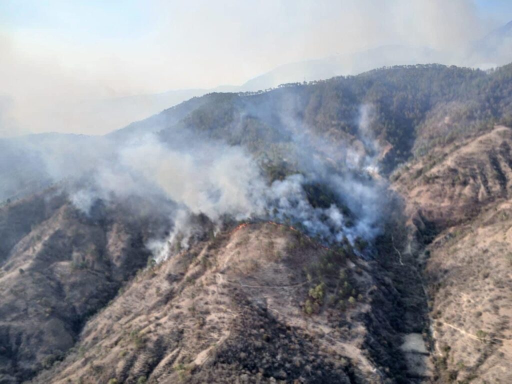 Por tierra y aire, guarda bosques sofocan el incendio en Sacapulas, Quiché.