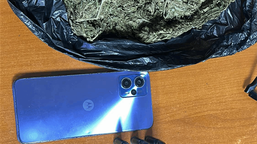 Al momento de su inspección, le localizaron una libra de marihuana, 15 municiones para fusil y un teléfono.