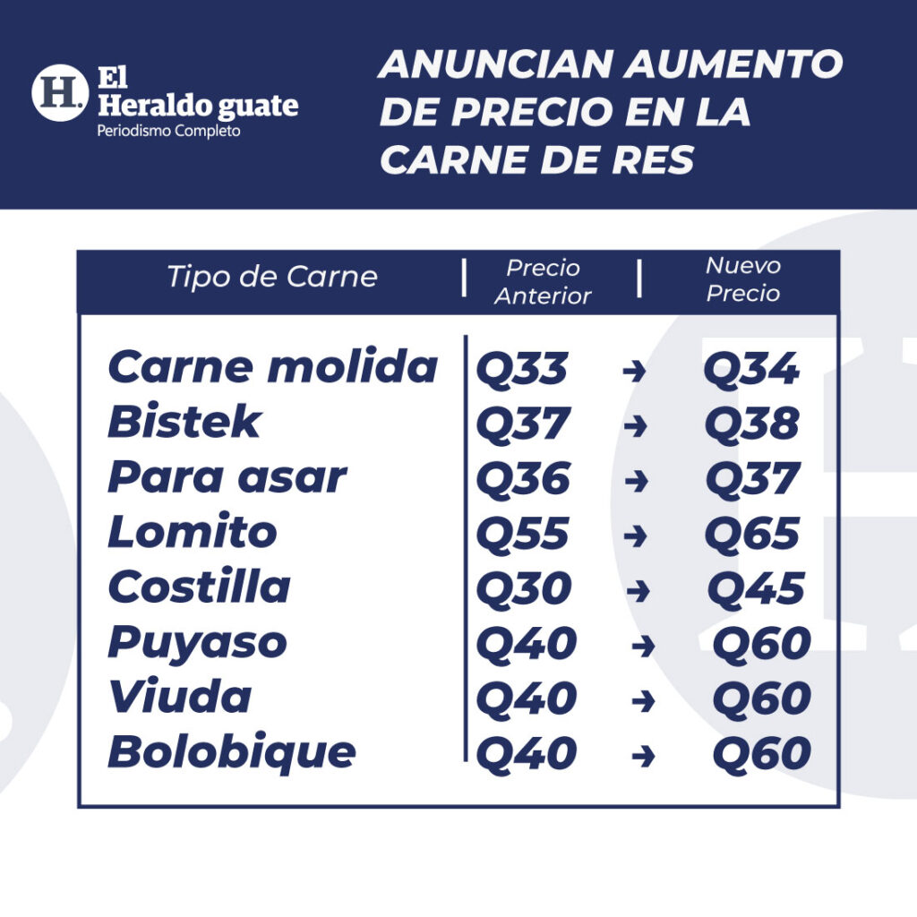Vendedores de carne de res en distintos mercados del país reportan un incremento en el precio por libra, situación que comienza a generar preocupación entre los consumidores. Según productores, para la próxima semana podría registrarse un nuevo ajuste que oscilaría entre Q0.50 y Q1.00 adicionales por libra.