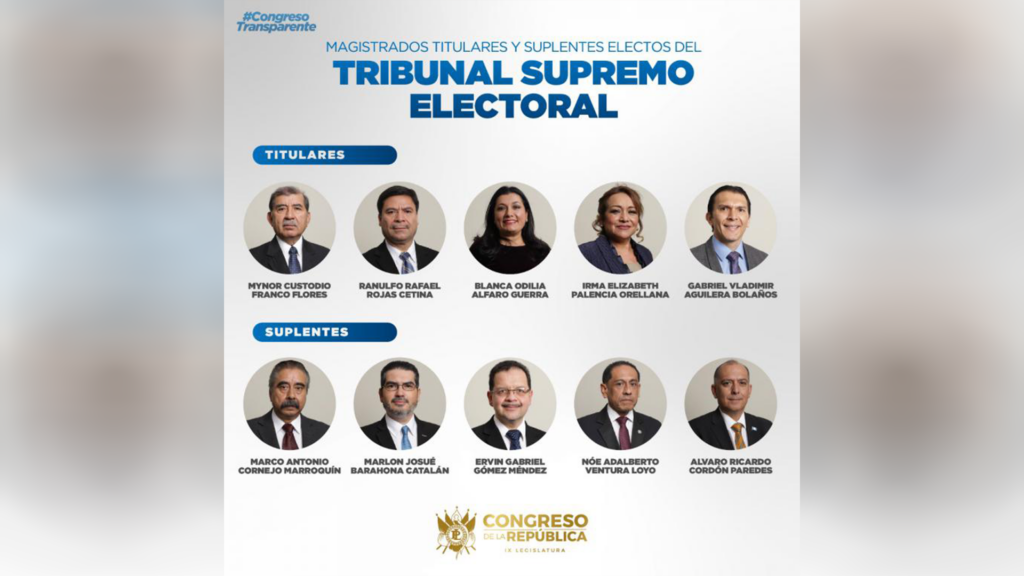 El Congreso de la República de Guatemala eligió a los nuevos magistrados del Tribunal Supremo Electoral de Guatemala para el período 2026-2032, tras varias horas de debate y negociaciones entre bancadas. La votación permitió integrar finalmente al pleno que dirigirá la autoridad electoral del país.